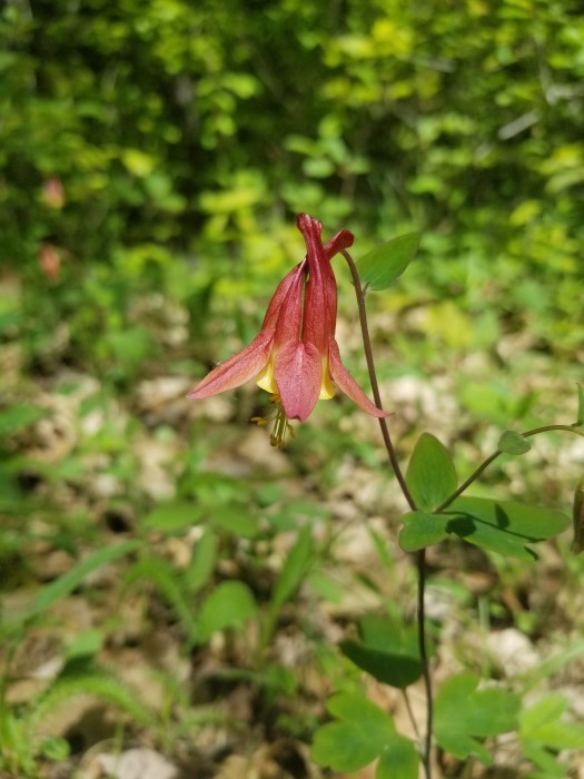 I take my time wandering through the woods. I am the only person out here on the trail, which I find odd. I had to drive past a campground full of dozens of people to find a parking spot, shouldn’t I have seen someone by now? Regardless, I enjoy the solitude. I snap some pictures of columbine blooming on the trail-side. Then I get to the beach.